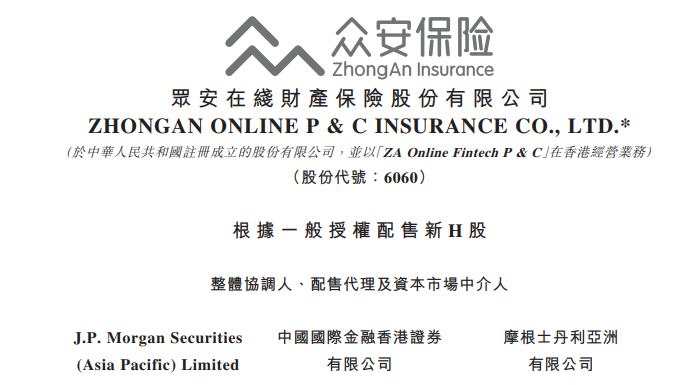 众安在线(06060.HK)公布拟配售近2.2亿股新H股,相当于经扩大已发行H股的约13.2%及已发行股份总数的约12.8%。配售价为每股18.25港元,较众安在线上日(6月25日)收市价19.94港元,折让8.5%。